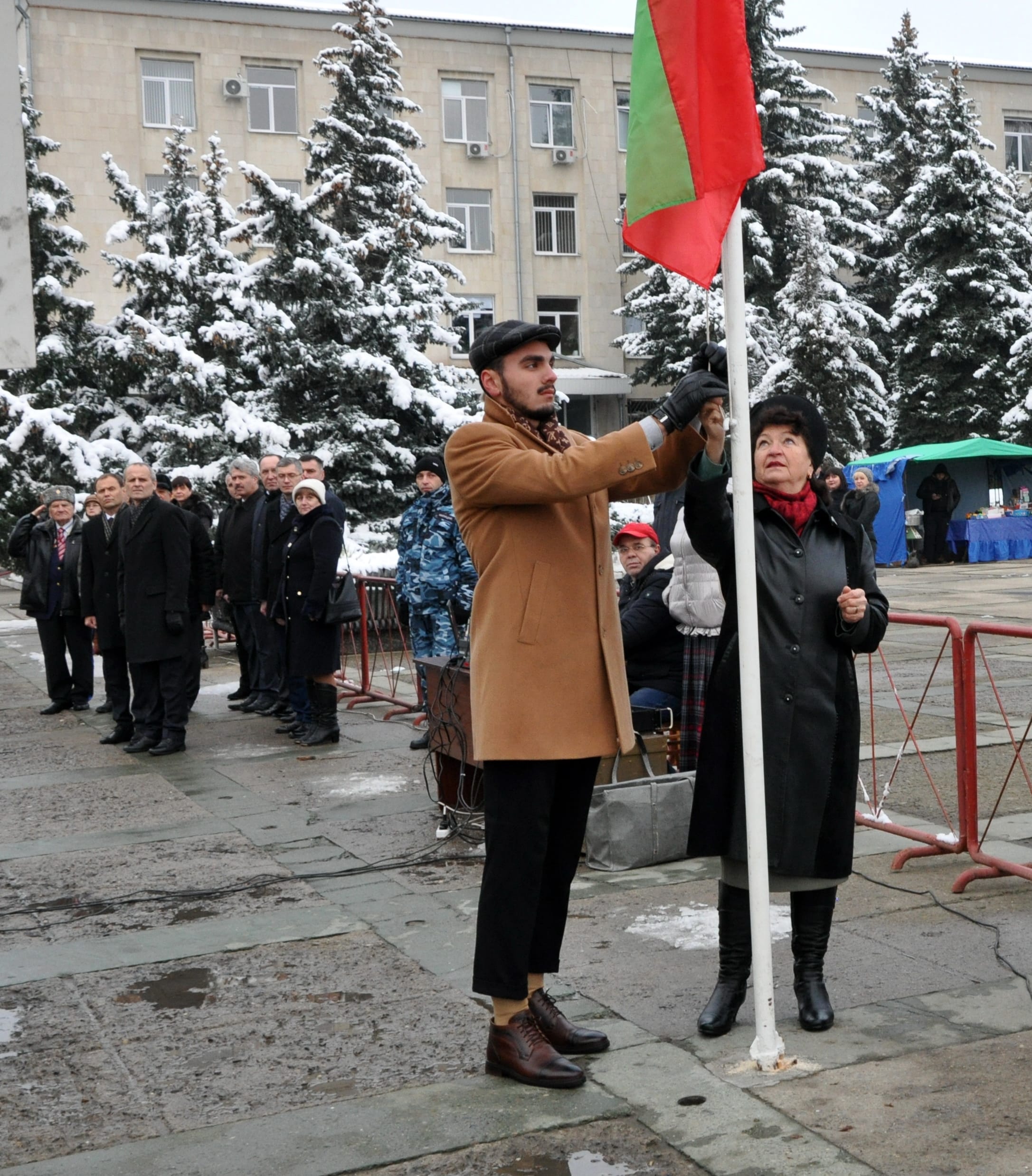 Праздничные мероприятия начались с церемонии поднятия государственного флага ПМР и флага города Рыбницы. В присутствии главы госадминистрации и председателя горрайсовета право поднять флаги предоставили активному члену общественной организации «Женщины за права и свободы» Ларисе Цуркан и чемпиону по гребле на байдарках и каноэ Андрею Пантелишину, а также активистке исполкома Союза защитников Светлане Геде и лауреату республиканских олимпиад Кириллу Суходольскому.