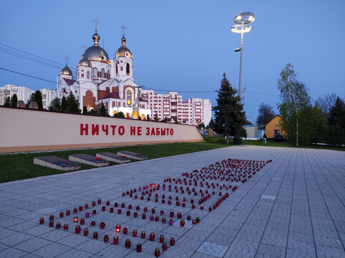Сегодня на Мемориале Воинской Славы прошла традиционная патриотическая акция «Свеча памяти». Жители города собрались, чтобы отдать дань памяти и уважения героям Великой Отечественной войны, погибшим защищая Родину.