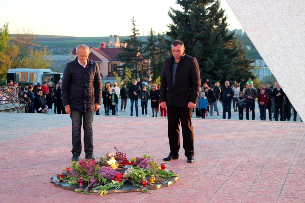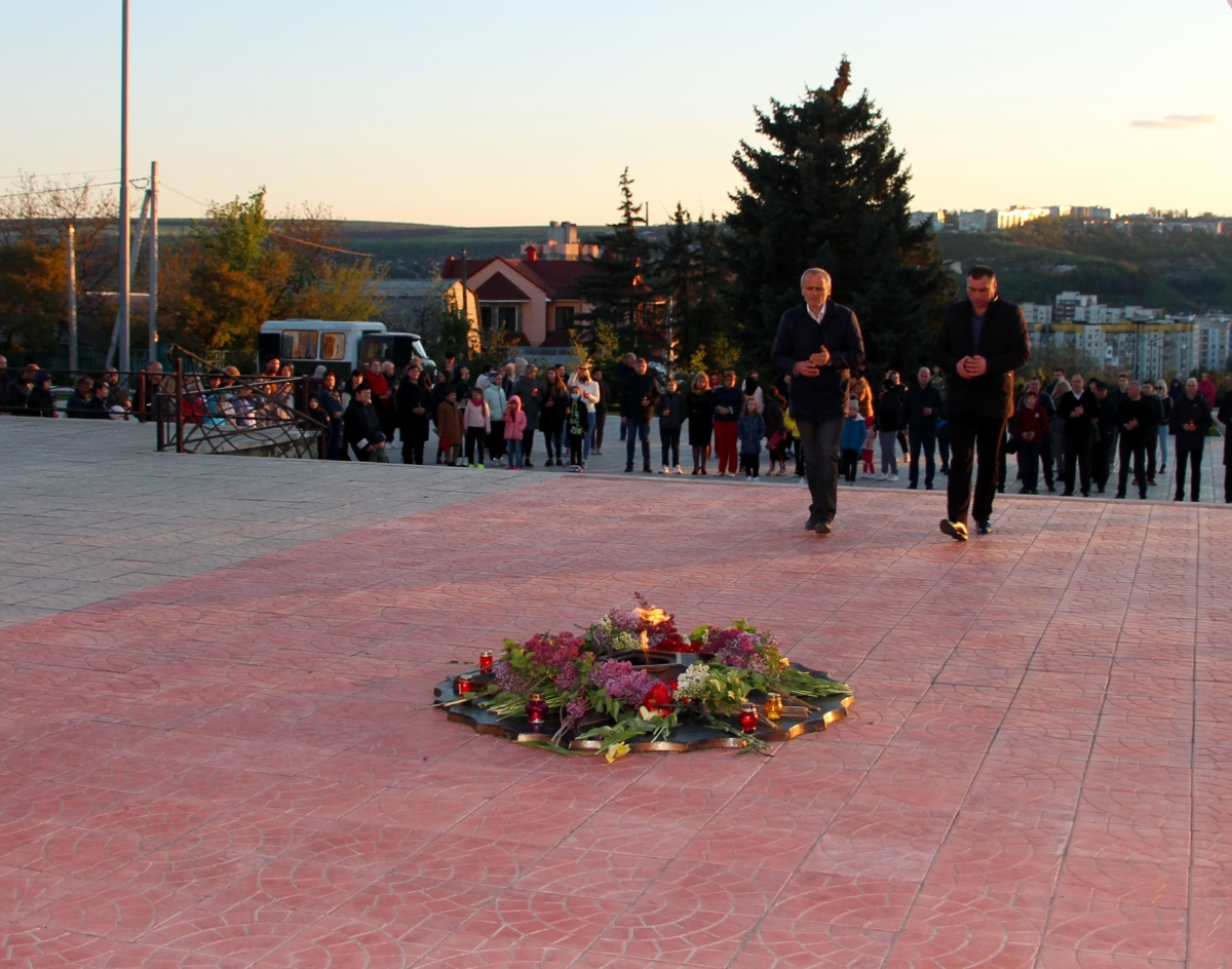 Рыбничане почтили память участников войны 1941-1945 годов минутой молчания, возложили цветы и горящие свечи к Вечному огню, а также к гранитным плитам с именами погибших воинов.