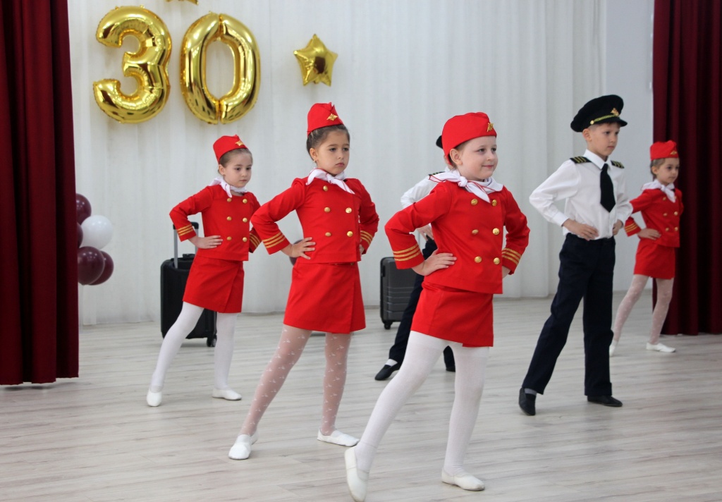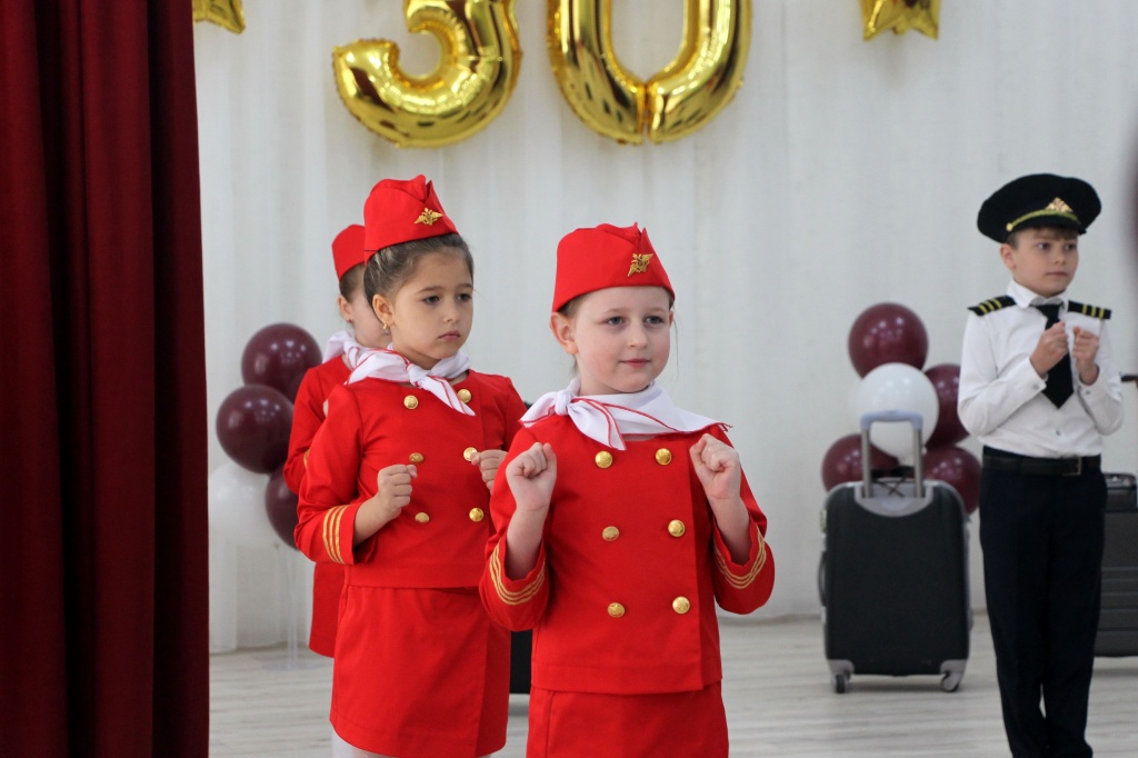 Праздничное мероприятие было организовано в виде постановки в стиле авиакомпании «Юбилейная» с пунктом назначения аэропорт «Солнечный», рейс №25 до детского сада «Родничок». Завершающим акцентом стал праздничный торт.