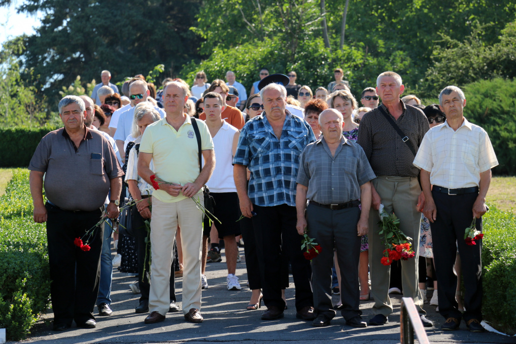 К гранитным плитам с именами героев легли цветы, а скорбную тишину прорезал звук метронома. Минутой молчания присутствующие почтили память всех погибших в той трагической войне.