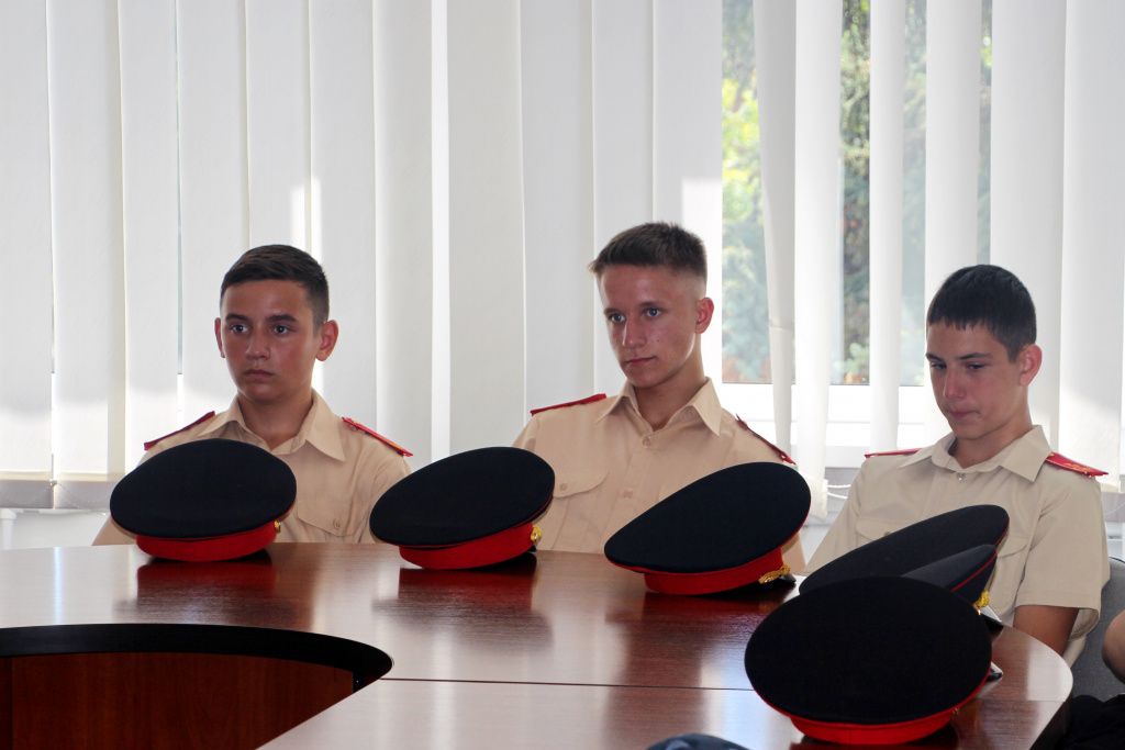Встреча продолжилась в формате беседы об особенностях учёбы, распорядке дня, участии в военных парадах, о хобби и увлечениях, любимых дисциплинах и планах на будущее. На вопрос о решении связать свою жизнь с военным делом, послужил ли примером кто-то из родных, кадеты и суворовцы отвечали по-разному. Взрослые так или иначе повлияли на их выбор, но главное, что они об этом не жалеют. Для Александры Бабенко примером стал дедушка, в прошлом военный, а родители увидели в дочери потенциал. Теперь она кадет и этим доказала, что и девушке по силам справиться со службой.