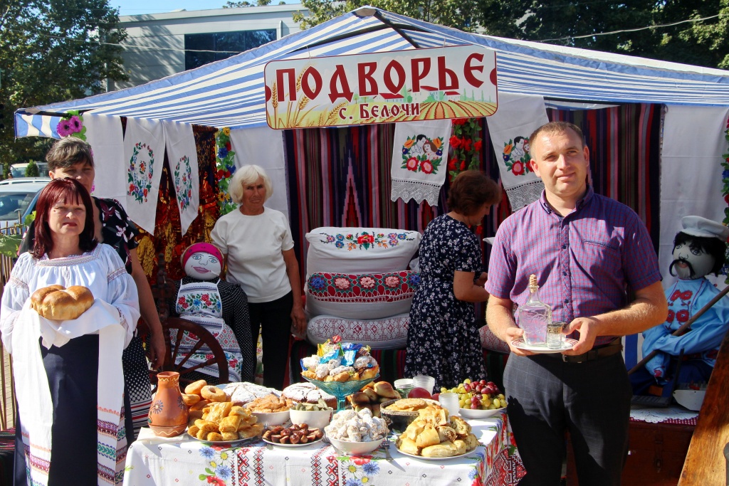 На городской площади развернулись ярмарочные подворья сел Рыбнцикого района. Гараба, Белочи, Ержово, Жура, Воронково, Попенки, Плоть, Строенцы – каждое село со своим колоритом. У каждого свой стиль, своя изюминка, многообразие чудесных рукотворных изделий, предметы народного творчества, национальные вкусные угощения. Хлебом с солью, песнями и танцами встречали гостей у подворий. В пляс пускались и все желающие. Целый цыганский табор прибыл из села Строенцы.